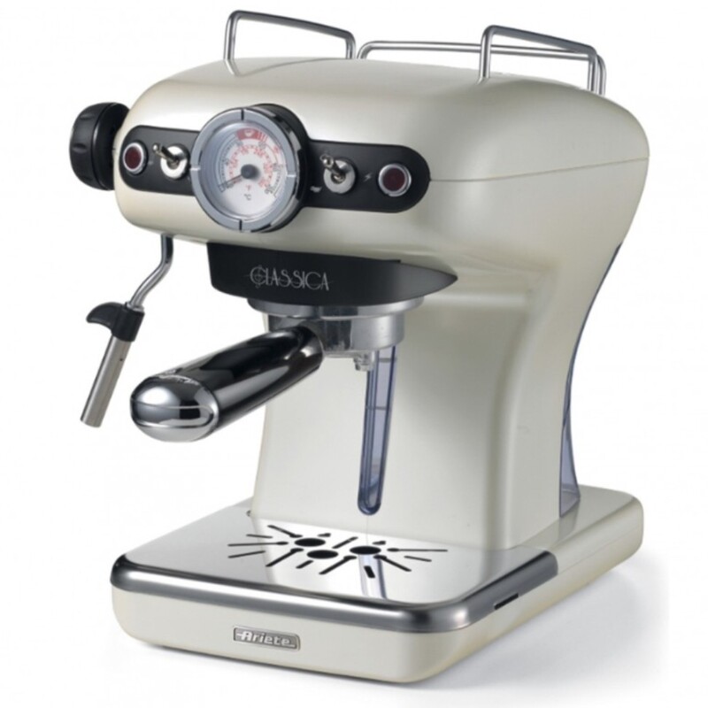 Ariete Vintage Espresso یک دستگاه قهوه ساز با طراحی ظریف و ظریف است که دارای آخرین فناوری برای قهوه آسیاب شده یا غلاف ESE است., Ariete محصولات نمادین و کاربردی می سازد: Vintage Line طراحی ایتالیایی را با سهولت استفاده ترکیب می کند که مشخصه Ariete است., بویلر آلومینیومی 900 وات و پمپ فشار 15 بار ضامن یک اسپرسویی عالی و مقاوم و خامه ای با رایحه ای شدید و معطر هستند., راحتی فوق العاده با سینی چکه قابل جابجایی و مخزن 0.9 لیتری قابل جابجایی برای پر کردن آسان, نازل Maxi-Capuccino عالی برای تهیه کف شیر در ترکیب با اسپرسو ایتالیایی است. |